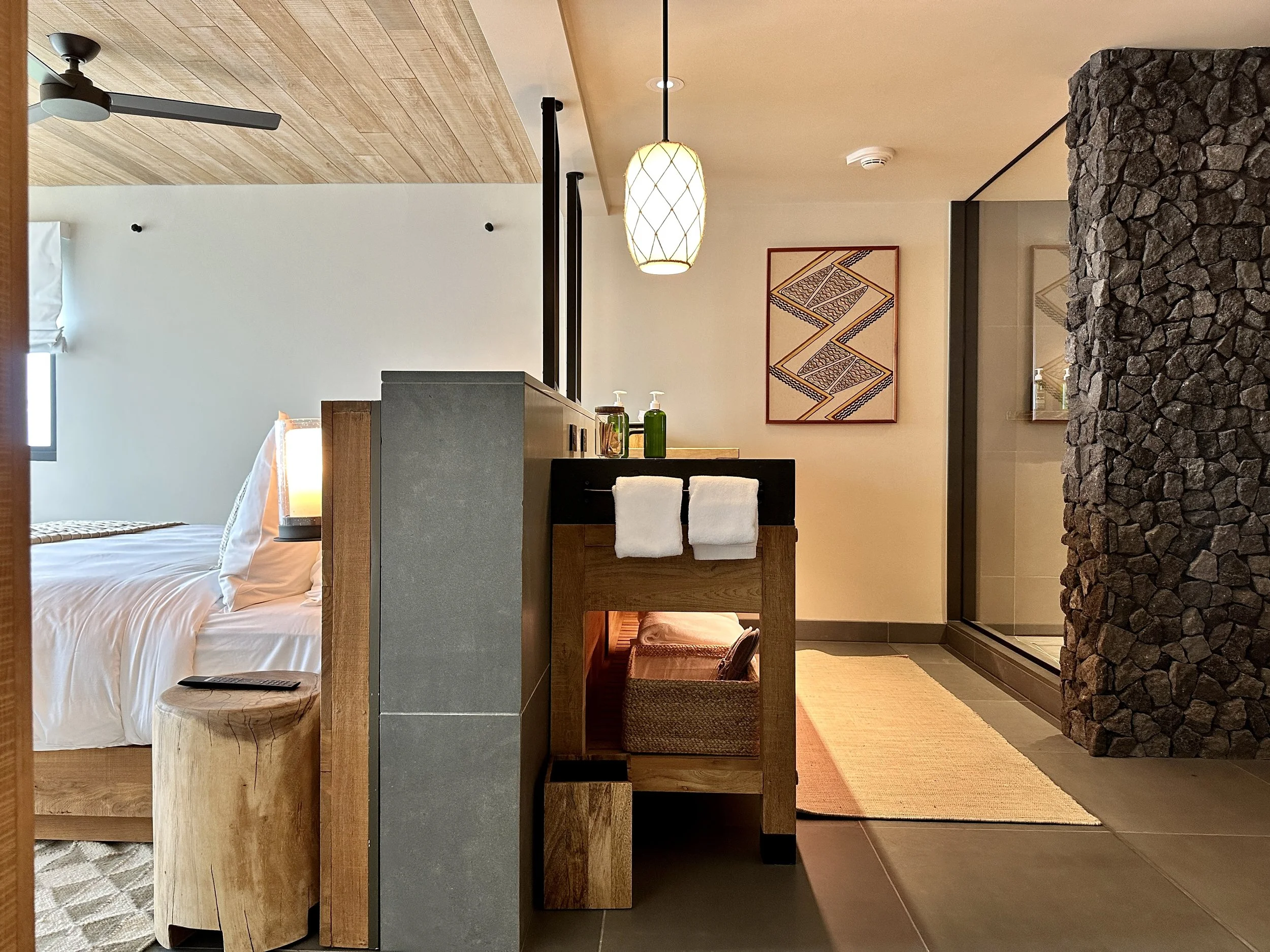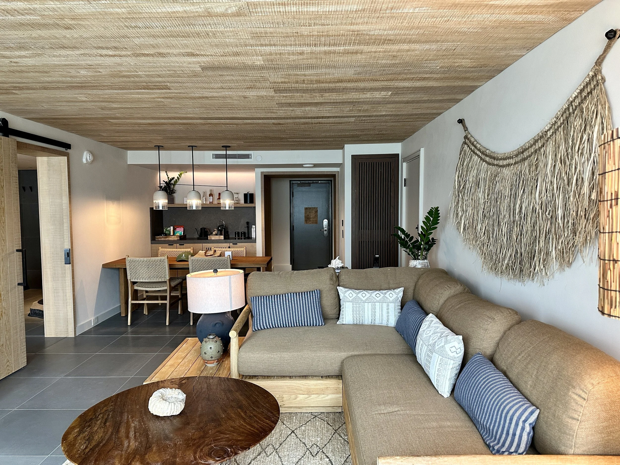 From the moment you drive up to 1 Hotel Hanalei Bay and step foot ini the sanctuary (lobby), you’re struck by the hotel's commitment to sustainability and the natural world. If you know one thing about 1 Hotels as a brand is they are know for sustainable luxury. The decor was minimalistic yet luxurious, with an emphasis on organic materials and earthy colors.