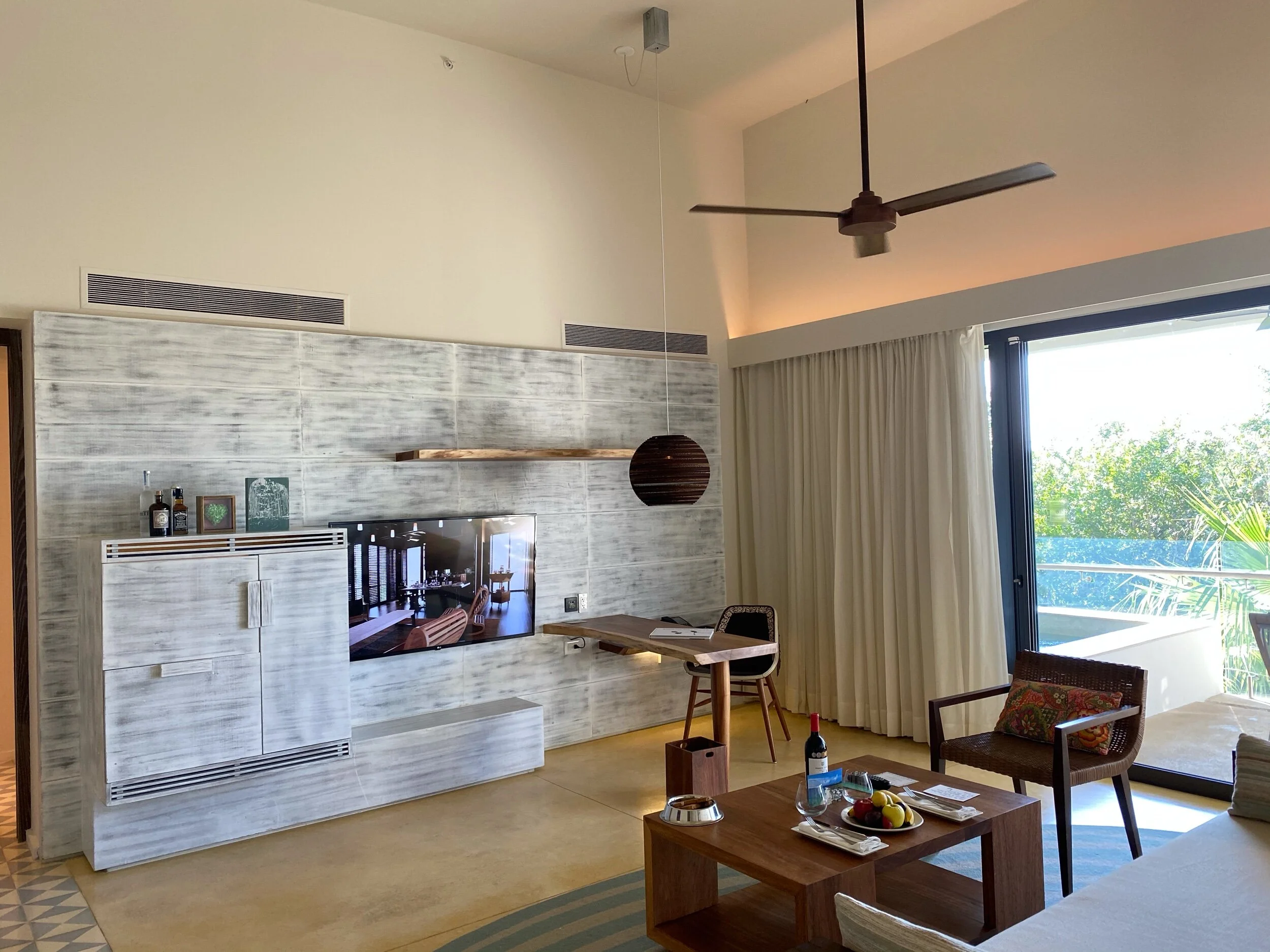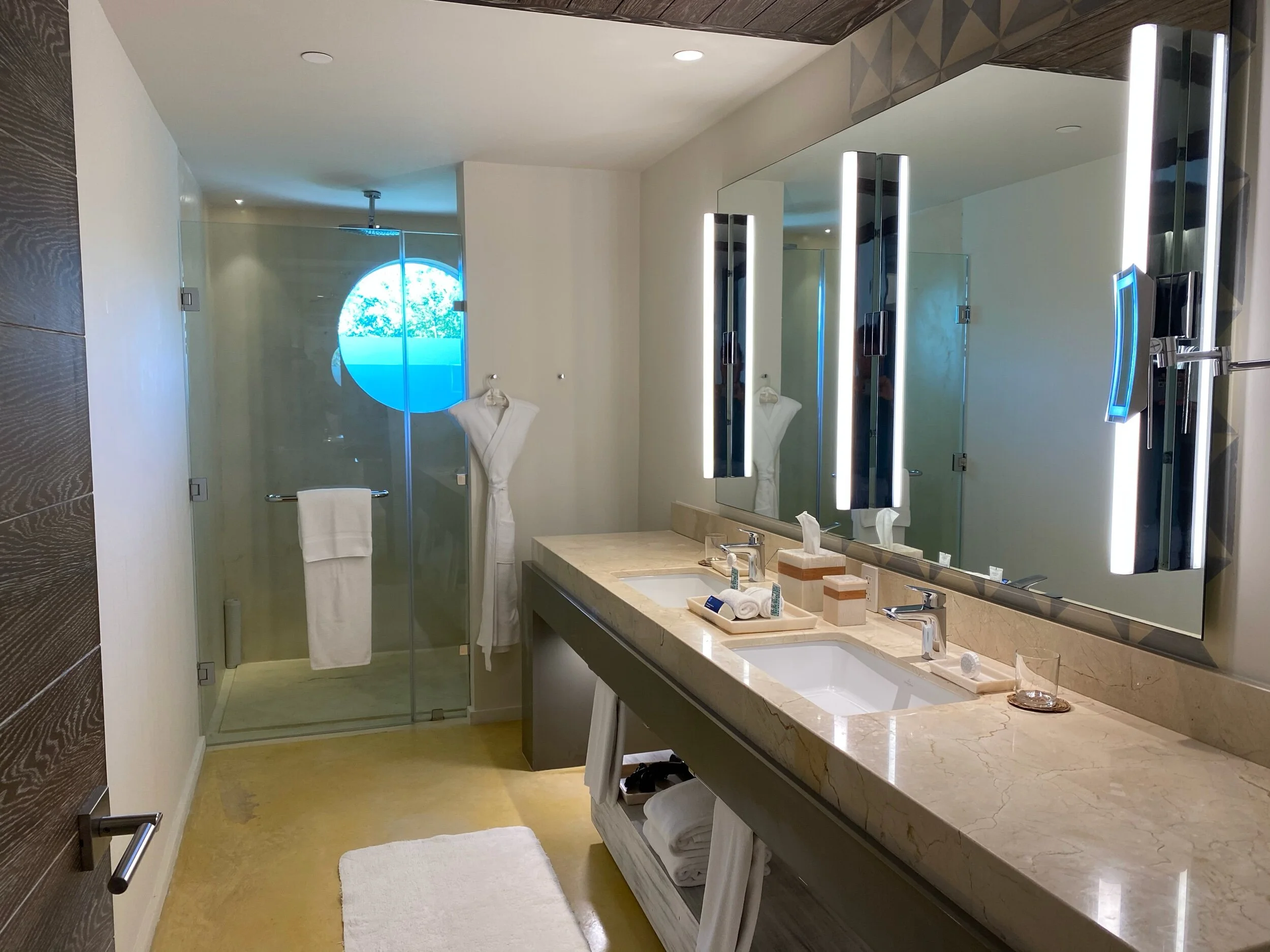 During our stay at Andaz Mayakoba, we were upgraded to a Beach Area Suite. While we stayed in a suite for our stay, it’s worth calling out that all of the guest rooms have a furnished terrace, stocked mini bar, walk-in rain shower, double-sink bathroom, Bluetooth speaker, robe and flip flops, individually controlled air-conditioning, blackout curtains, Nespresso coffee maker and a flat screen TV.