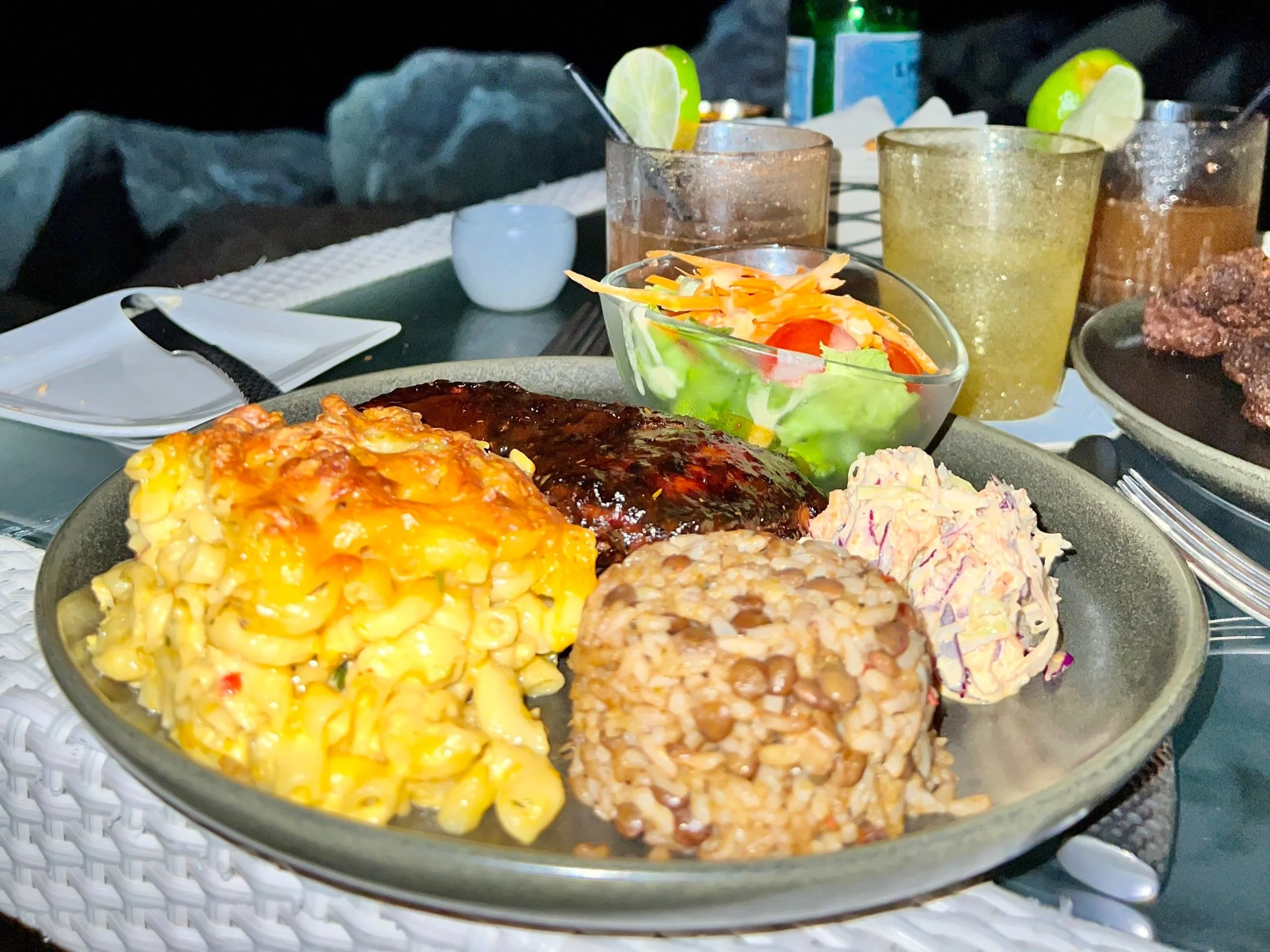 Bbq night was a condensed menu that featured your choice of bbq ribs, bbq chicken, fried chicken, grilled lobster, grilled red snapper, or bbq catch of the day which are all served with coleslaw, rice and peas, and macaroni pie.