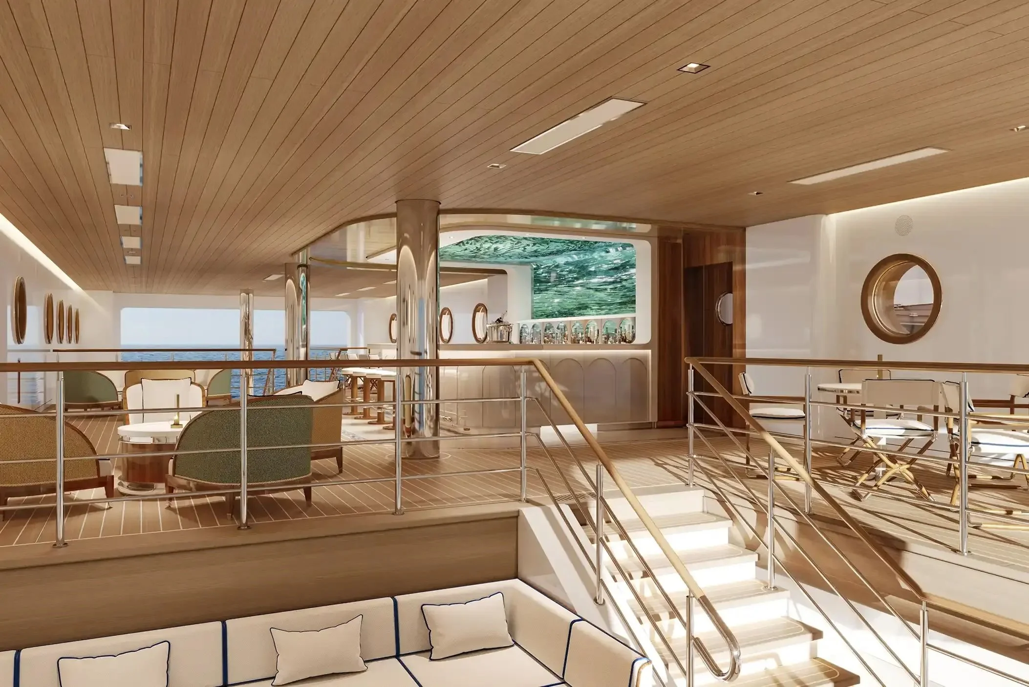 Beyond the suites, Four Seasons Yachts is designed for both relaxation and adventure. At the heart of the vessel, a 20-meter infinity pool graces the yacht’s unique canoe-shaped aft, offering panoramic views and a perfect setting for sun-soaked serenity. A state-of-the-art transverse marina brings guests level with the sea, serving as both a tranquil lounge space and a launch point for an impressive selection of water sports. From jet skiing to paddleboarding, guests can seamlessly transition from indulgent relaxation to exhilarating adventure.