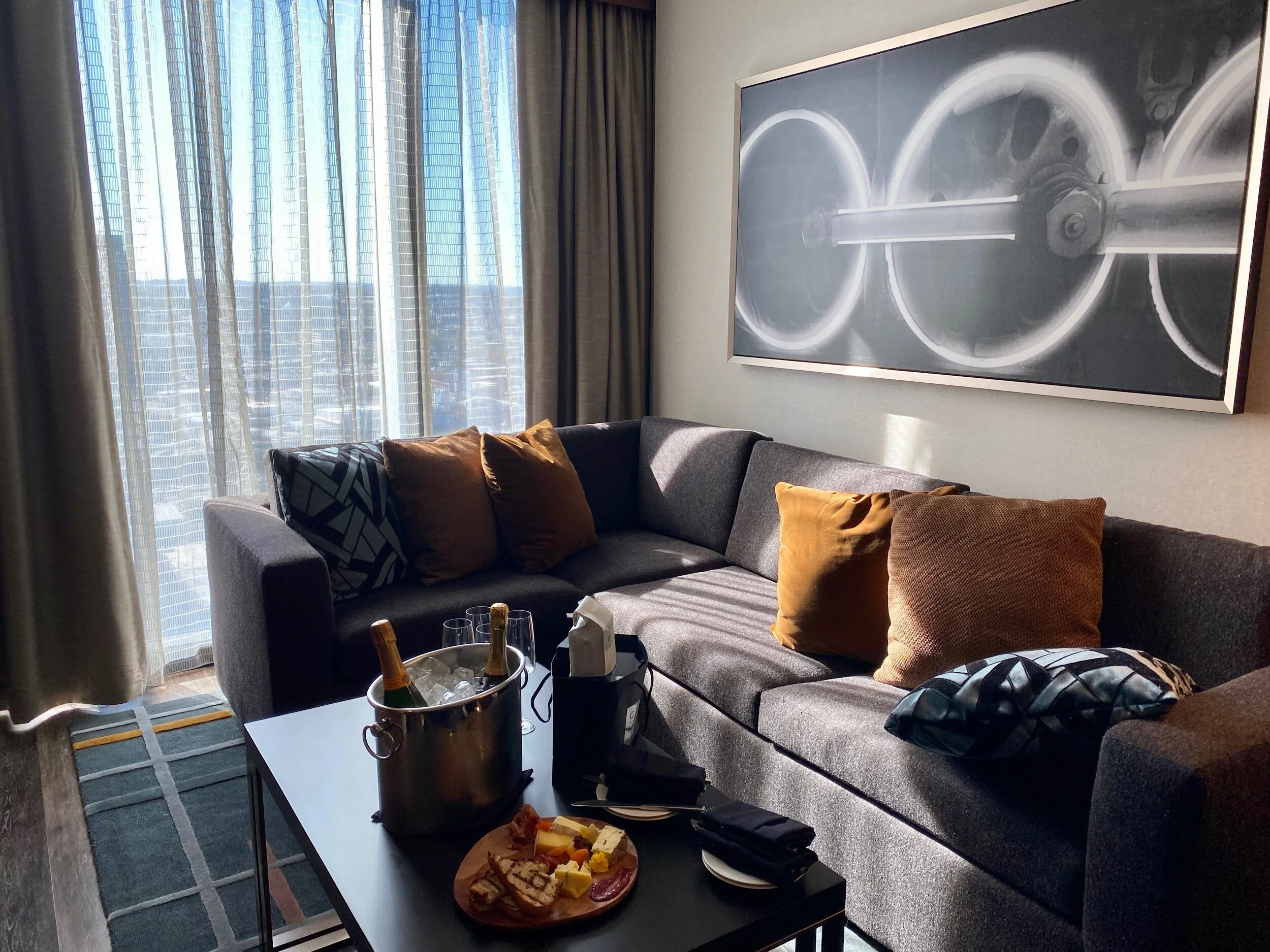 During our stay at Grand Hyatt Nashville, we were upgraded to a Grand Corner King Suite due to low occupancy rates during our stay. While we might have had a suite for our stay, it’s worth noting that all 591 guest rooms including 55 suites have hardwood floors, floor-to-ceiling windows, flat-screen TVs, blackout curtains and BALMAIN bath amenities.