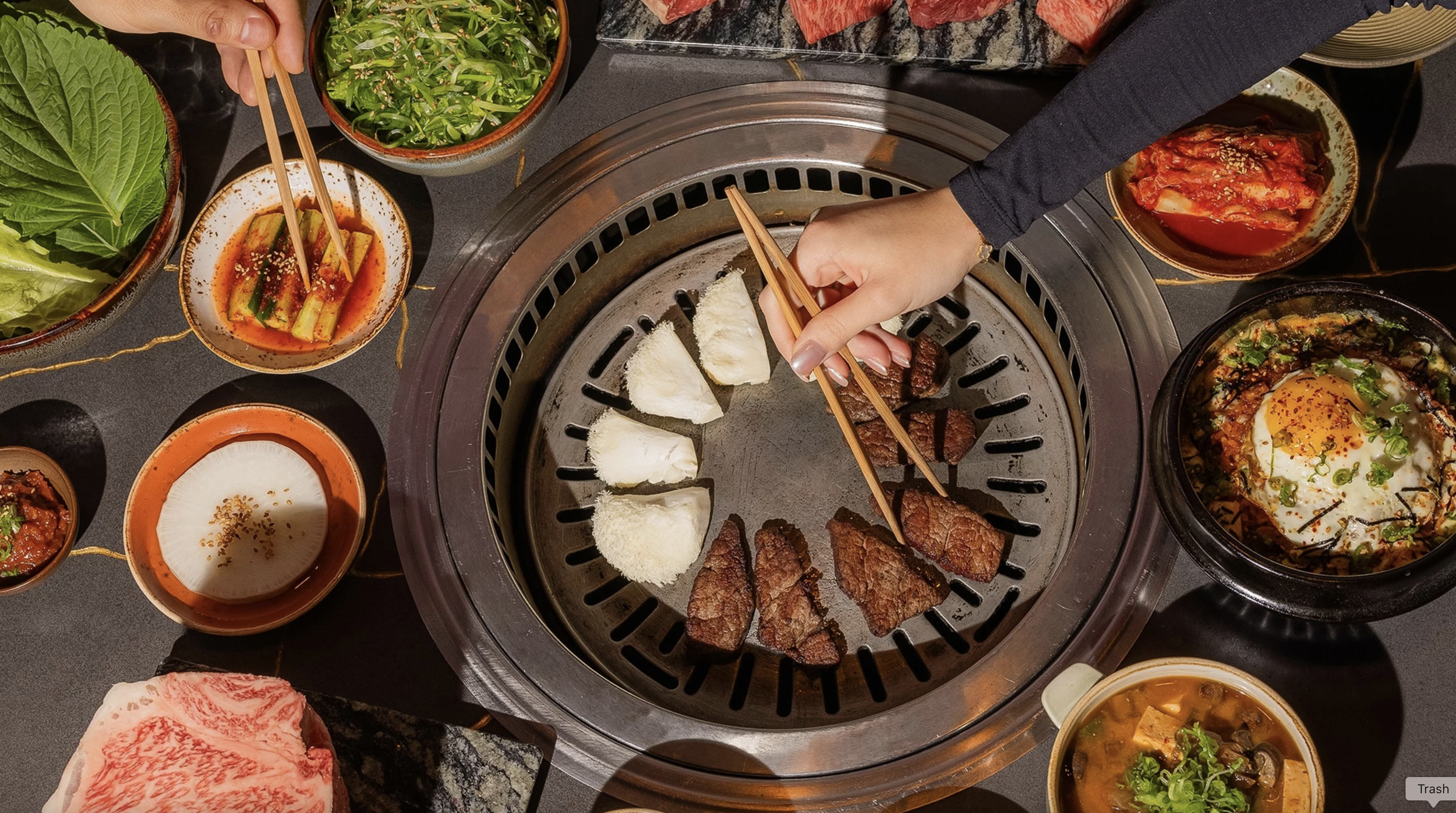 The restaurant pays homage to the city’s iconic steakhouse roots while introducing a new iteration of the classic dining concept. PERILLA steakhouse offers an energetic and explorative dining experience with custom table-side grills built into each table in a beautifully designed warm space thoughtfully introducing elements of Korean architecture.