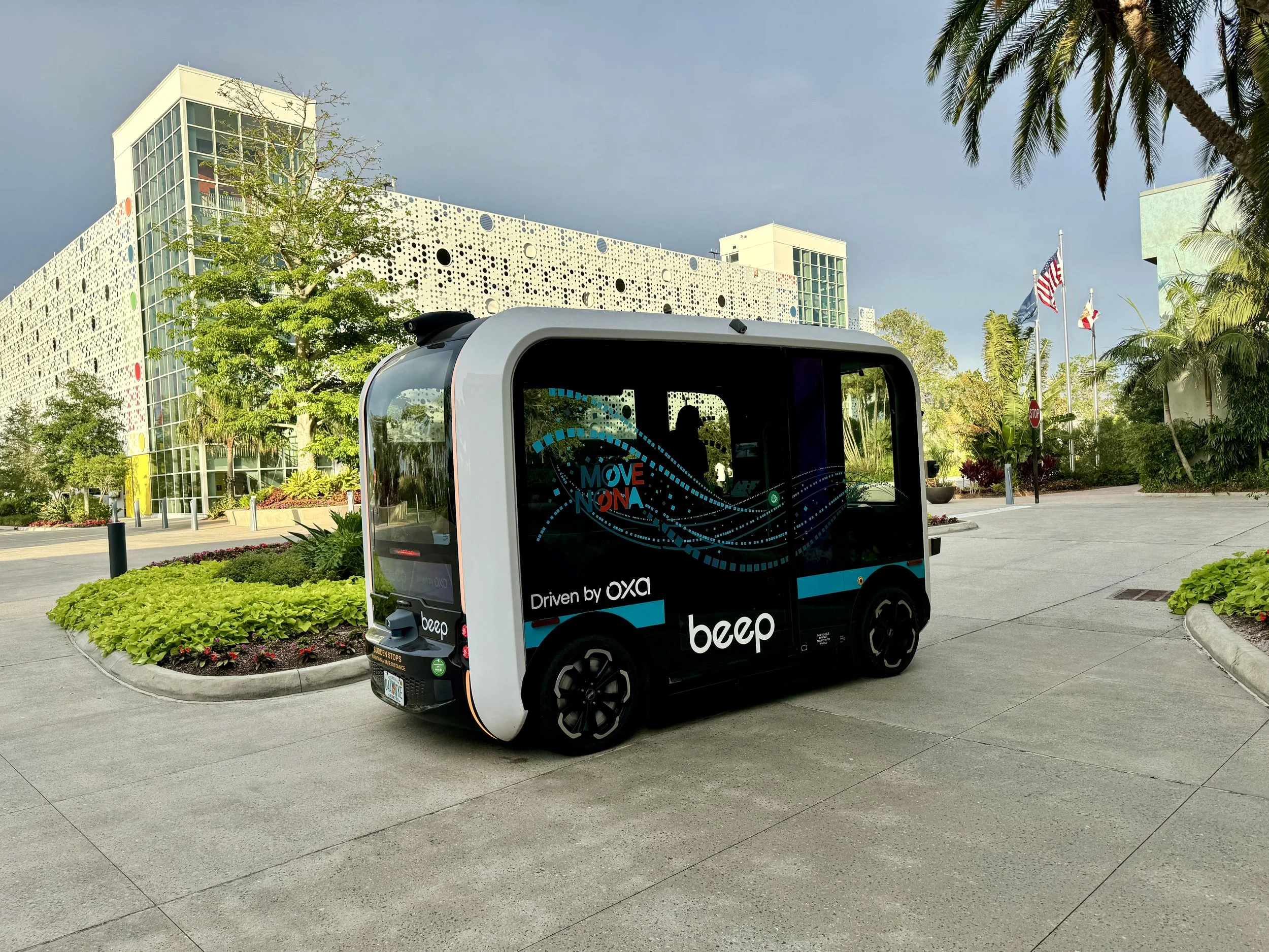 The Lake Nona Wave community including the Lake Nona Wave Hotel is served by autonomous vehicles, called Beep. Beep will take you anywhere in the Lake Nona Wave community including the other restaurants in the village.