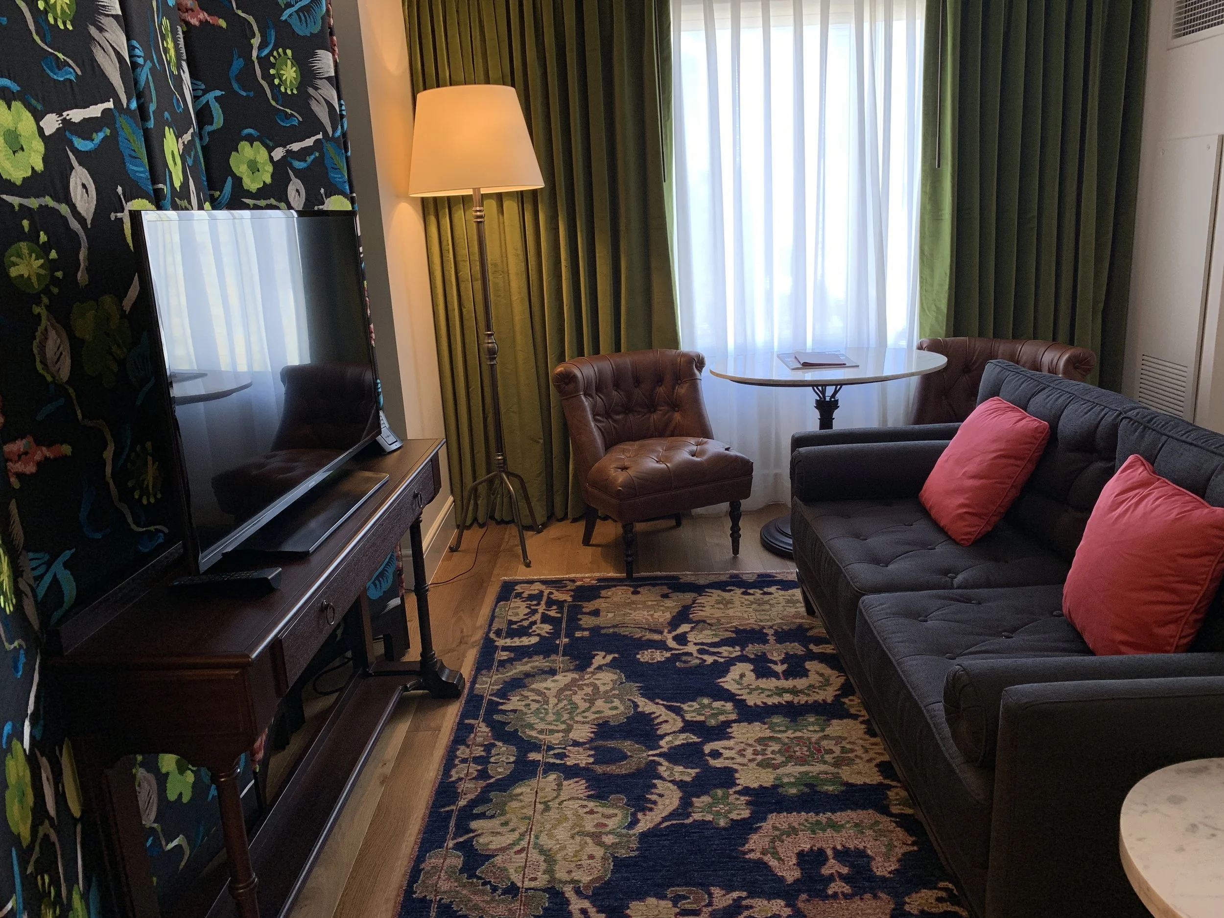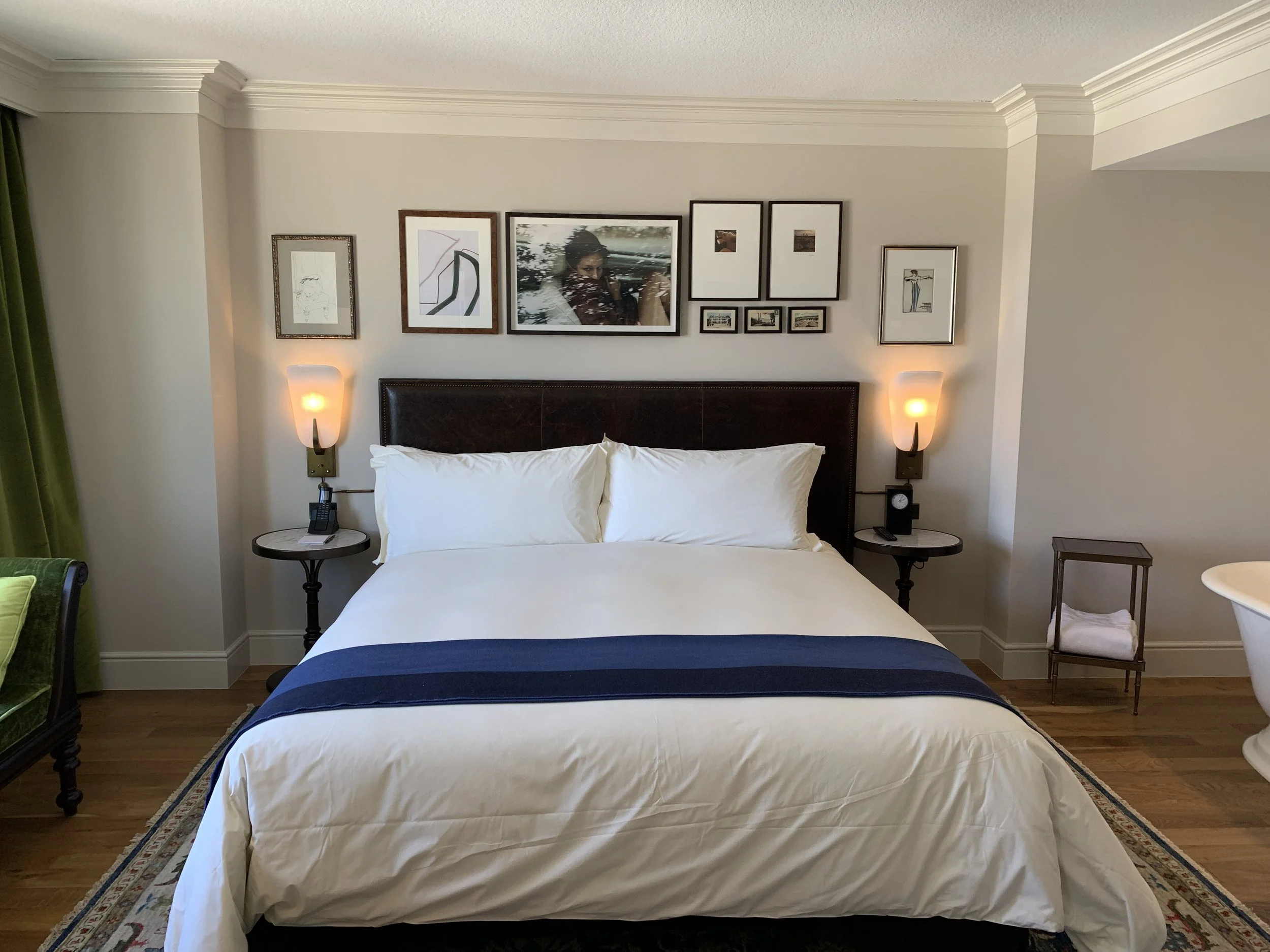 The suite was very elegant inspired with the use of emerald green velvet curtains, a king size bed with leather wrapped headboard and artwork everywhere you turn.
