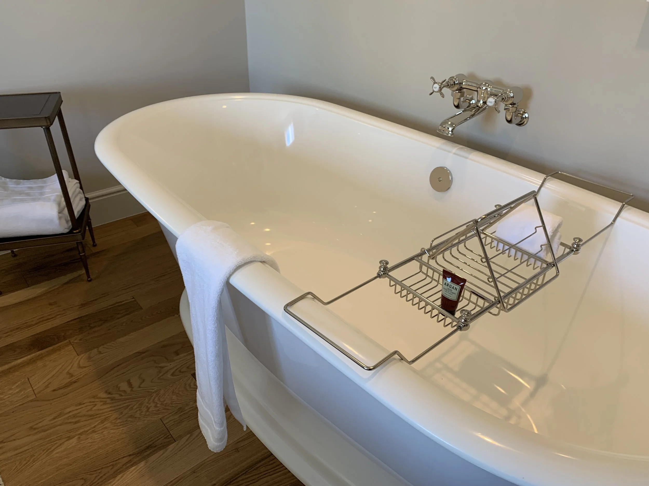 During our oasis at the Nomad, we stay in a Grande Suite. And let us be the first to tell you how “grand” it truly was. The suite was much brighter in comparison to the rest of the hotel with oak hardwood floors, plenty of natural light, an amazing amount of texture from the use of fabrics and leather as well as plenty of unique artwork. The suite featured a separate sitting room, freestanding pedestal tub and a separate half bath and toilet room.
