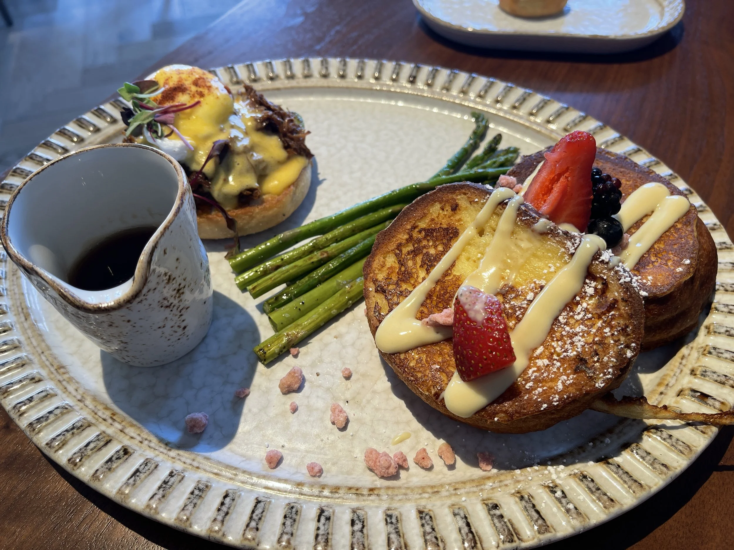 For breakfast we dined at Ponto Lago which has an amazing terrace that yield great views during breakfast. Breakfast is offered buffet style or order off the menu. We’d highly recommend the Beef Birria Benedict and the French Toast.