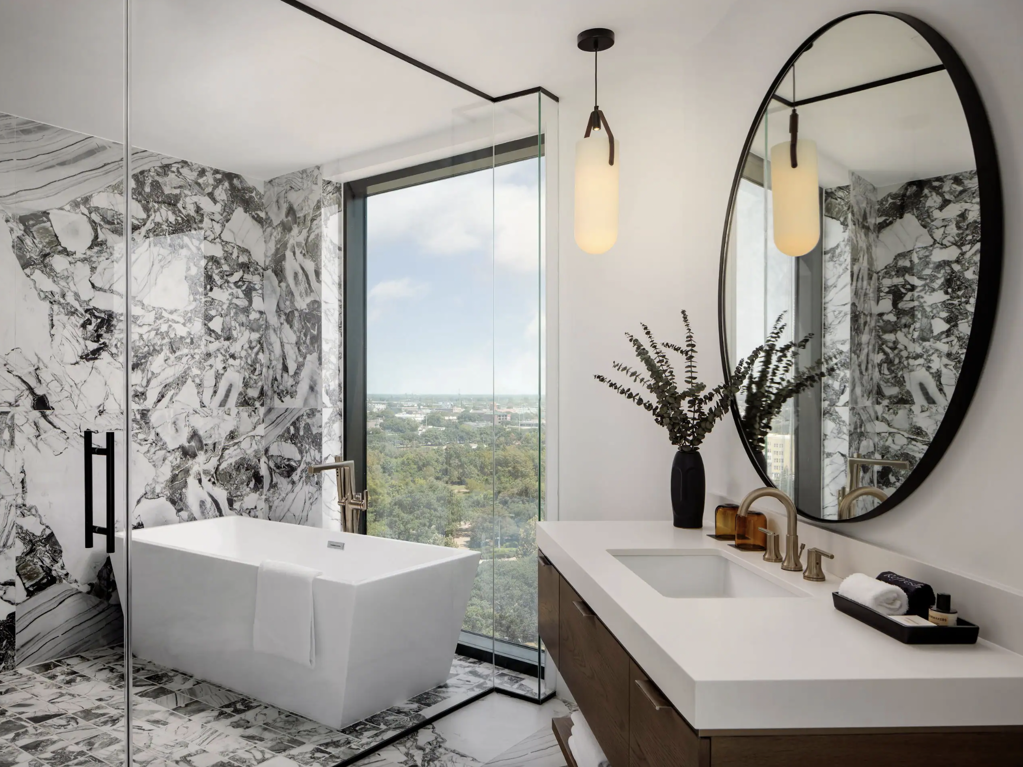 The long-awaited, uber luxury Thompson Houston hotel is scheduled to open its doors this spring. And the images of the luxe hotel provide a peek into the sleek interiors that are a trademark of the Thompson group. The Thompson Houston will feature 174 rooms including 34 suites with floor-to-ceiling windows offering unobstructed views across the cities skylines in all directions.