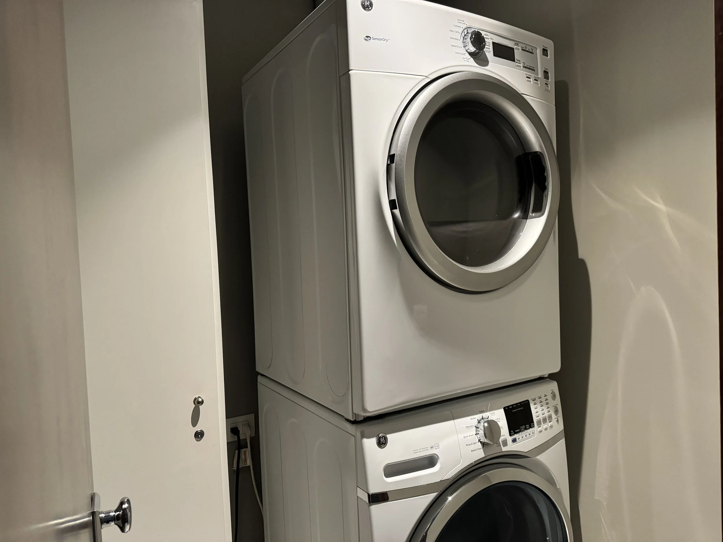 The residence includes a convenient in-unit washer and dryer. These modern, high-efficiency appliances are seamlessly integrated behind a closet door, allowing for easy and discreet laundry care during your stay. Perfect for extended visits, they offer the comfort and convenience of home while maintaining the residence's sleek and sophisticated design.