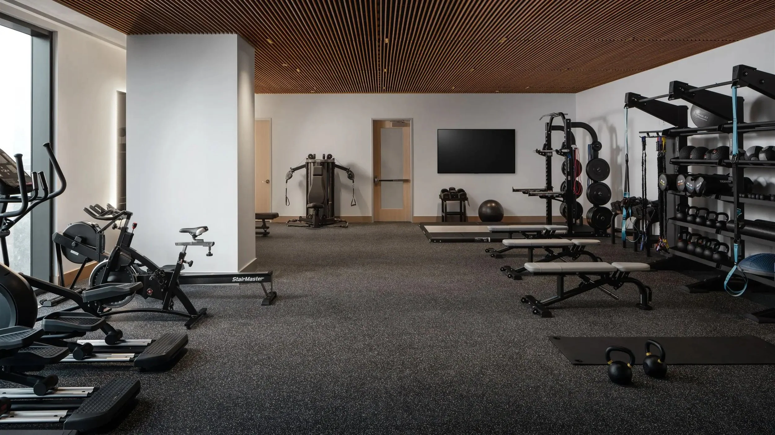 The Fitness Center at Thompson Houston is a state-of-the-art facility designed to cater to the wellness needs of discerning travelers. Boasting modern equipment and ample space, guests can maintain their fitness routines with ease while enjoying panoramic views of the city skyline. Whether seeking a cardio workout or strength training session, the Fitness Center offers everything needed for a rewarding exercise experience. Complimentary water and towels are provided, ensuring guests feel refreshed throughout their workout.