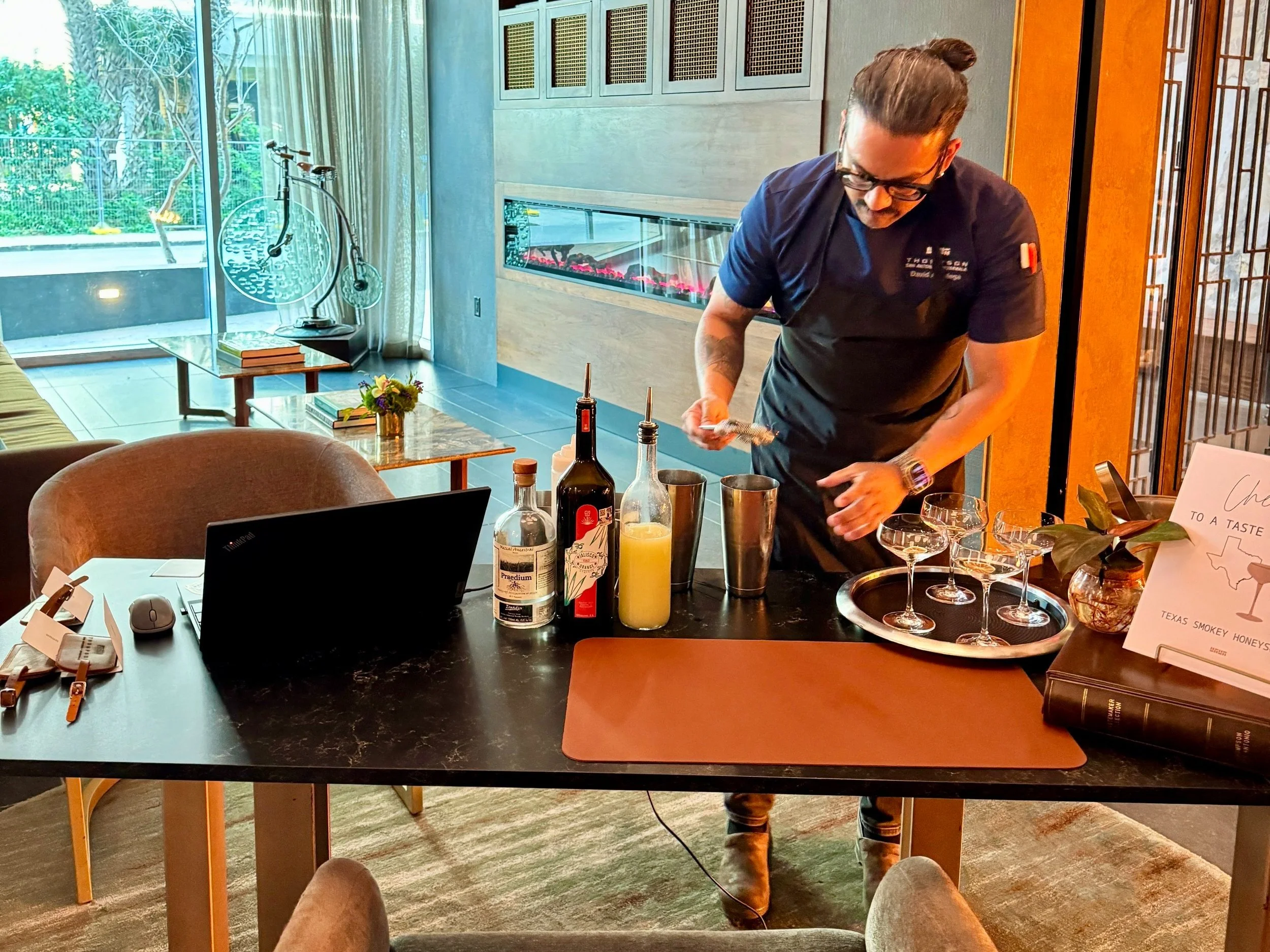 Our stay at Thompson San Antonio began with private check-in at the taste-makers desk where we were greeted by the head chef preparing a delicious welcome drink. Our stay was filled with unparalleled skyline views, sophisticated accommodations, and vibrant dining options.